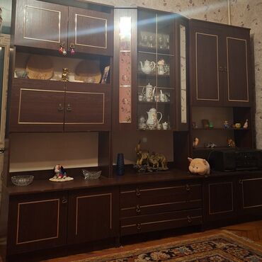 Klassik divar dolabı/gostinaya “stenka” dəsti - Material: ağac əsaslı (laminat/MDFlam görünüşlü), açıq fındıq rəngli. - Komplekt tərkibi: bir-birinə birləşən çoxmodullu hissələrdən ibarətdir. - ...200 AZN