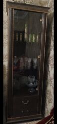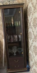 Qonaq otağı üçün mebel dəsti - Material: tünd qəhvəyi rəngdə MDF/laminat karkas, dekorativ künc elementləri, şüşə vitrin qapıları. - Komplekt tərkibi: 1) İkiqapılı iri vitrin şkaf – yuxarı hissə...