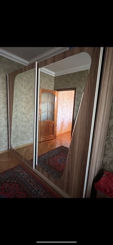 Mebel dəsti və şüşəli qapı - Dəhliz/antre üçün mebel komplekti: iri divar güzgüsü, paltar asmaq üçün 3 ədəd metal asqı, üst hissədə açıq rəf, ortada çekmecəli bölmə, aşağıda isə çoxsaylı qapılı do...