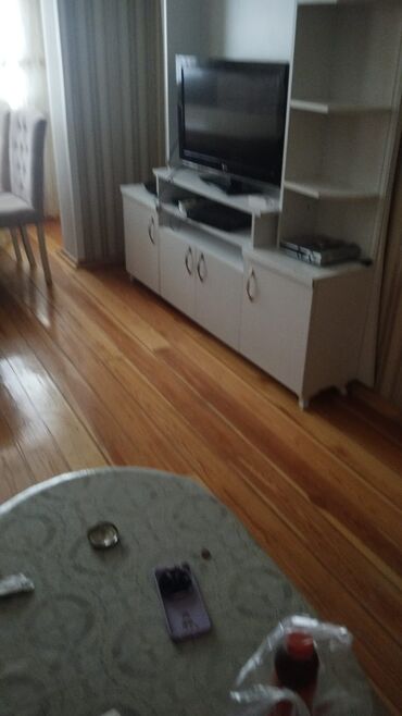 Mənzillərin icarəsi üçün təklif: zövqlü dizaynlı, tam mebellə və məişət texnikası ilə təchiz edilmiş 3 otaqlı mənzil. - Zal: divara quraşdırılmış televizor, yumşaq künc divan, jurnal masası, işıql...