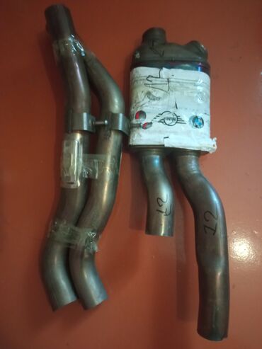 Avtomobil səsboğucu (mühərrik egzoz sistemi üçün) Xüsusiyyətlər: - Arxa səsboğucu korpusu – silindrik/oval tipli, paslanmayan metal gövdə - İkiqat çıxışlı (solda və sağda 2 ədəd boru) - Ortada yux...