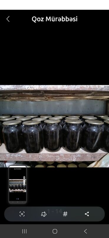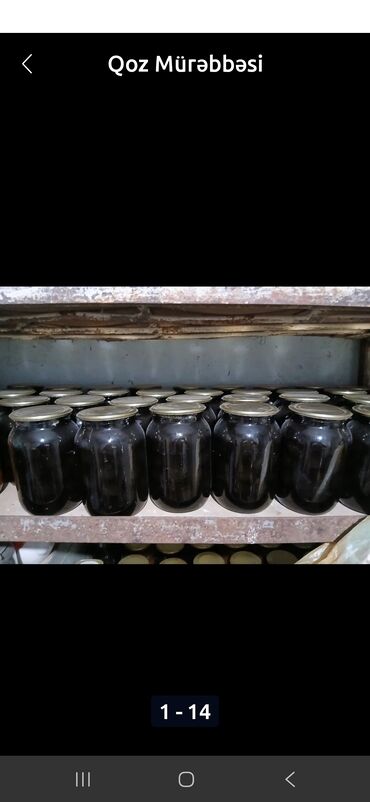 Qoz mürəbbəsi – şüşə bankalarda, metal qapaqlı.