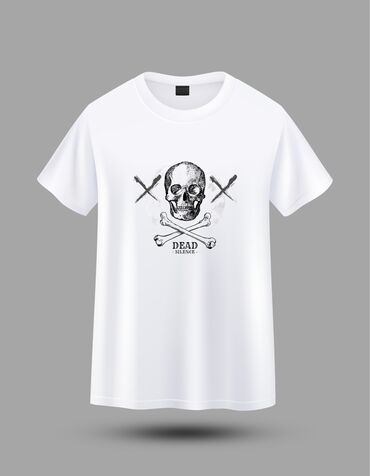 Qara rəngli uniseks t‑şört. Ön hissədə ağ rəngdə metal/black-metal stilində kəskin xətli qrafik çap. Qarın və sinə hissəsinə oturan, yığcam siluetli kəsim, qısa qol. Yumşaq, elastik trikotaj parça;...