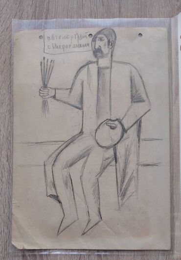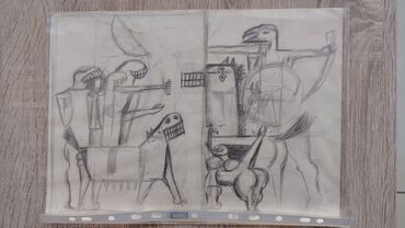 Продаётся редкая оригинальная графическая работа Камала Əhməd — примитивистская батальная сцена, выполненная карандашом на бумаге. Характерный авторский стиль: угловатые фигуры, экспрессивная деформация форм, наивно-модернистская манера.