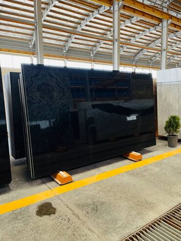 - Qara qranit/mərmər plitələr: Parlaq cilalanmış, güzgü effekti verən iri format lövhələr. Daxili və xarici memarlıqda mərtəbə, divar örtüyü, mətbəx və vannalarda səthlər üçün istifadə oluna bilər. Homogen rəng və dərin qara ton.