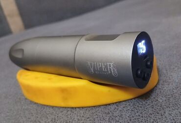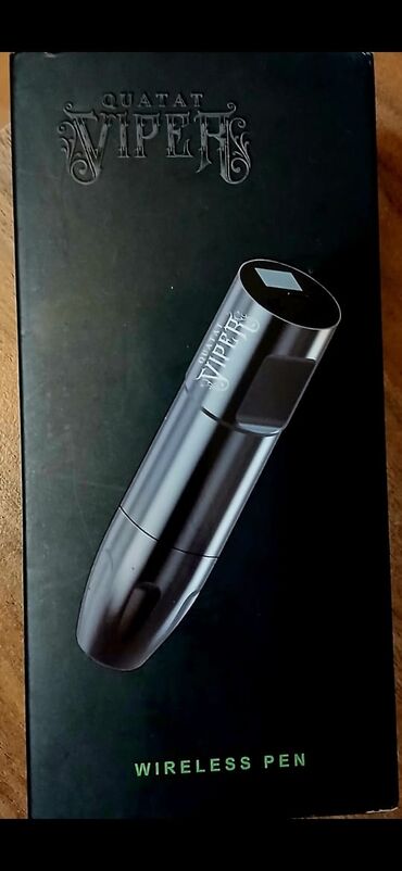 Peşəkar və yarı-peşəkar tətuaq işləri üçün rahatlıq, səssiz və stabil işləmə, dəqiq tənzimləmə və mobil istifadə imkanı təqdim edən pen tipli cihaz. Şık boz-metal rəngli korpusda “VIPER QUATAT” loqotipi ilə.