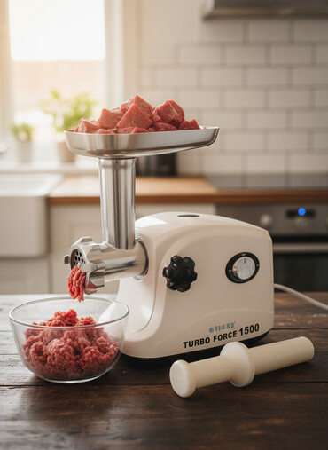 QUICKS Turbo Force 1500 ətçəkən maşın - Güc: 1500W (göstəriş üzərində “Turbo Force 1500”) - Korpus: Kompakt və dayanıqlı plastik gövdə - Metal hissələr: Paslanmayan polad ət giriş borusu, bıçaq-bl...