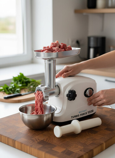 Mətbəxdə sürətli və səliqəli ətçəkmə üçün praktik model. Turbo güclü motoru və metal mexanizmi ilə iri porsiyaları rahat emal edir.