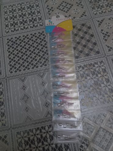 - Paket 2: Metal rəngli (gümüş ton) uclu/konus formalı sırğa cütləri. Hər bir cüt ayrı bölmədə, standart sancaqlı mexanizmli.