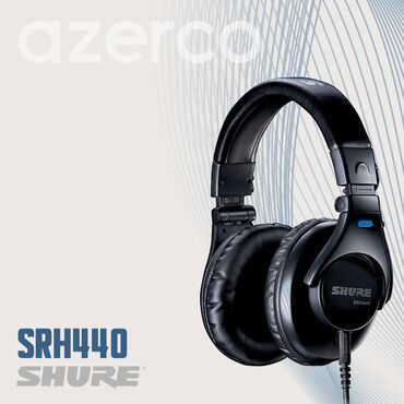 Qulaqlıq Qara rəngdə, qulaqlıq yastıqları ilə təchiz olunmuş Shure SRH440 qulaqlıqları. Bu qulaqlıqlar studiya və evdə istifadə üçün nəzərdə tutulub. Kabel qoşulma yeri qulaqlığın bir tərəfində yerləşir.
