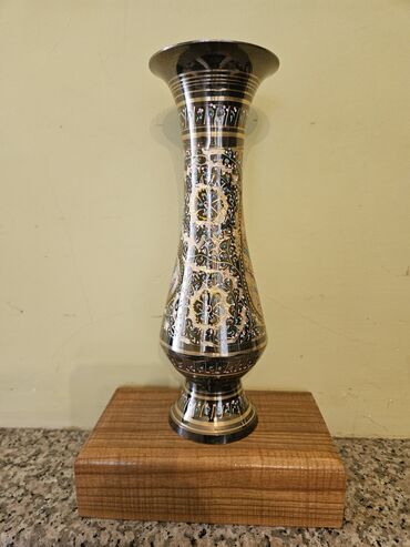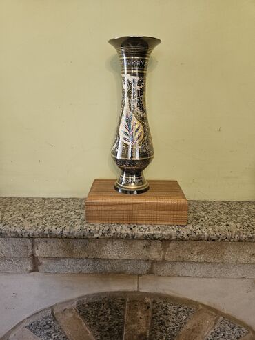 Старинный из металла ручной работы ваза. Qədimi əl işindən olan metall