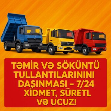 Mercedes-Benz markalı kiçik ölçülü ağ rəngli yük maşını təmir tullantılarının, zibil və söküntü qalıqlarının daşınması xidmətini təklif edir. Bu özüboşaldan maşın şəhər daxilində 7/24 saat ərzində ...