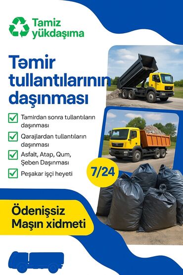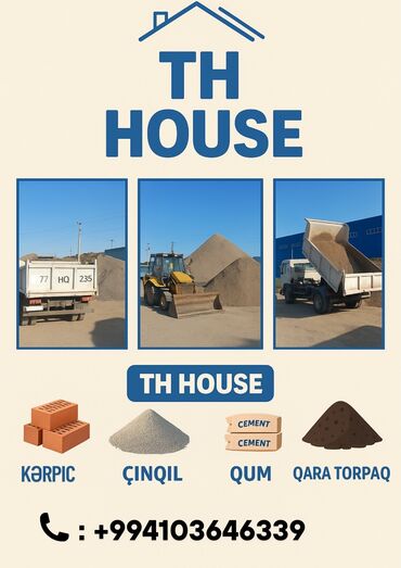 Torpaq (samaxi̇ ) ,qum ,sebən,accep, sement,kərpi̇c.Topdan və pərakəndə satışı hər növ yüklərin və tullantıların ( zibil ) daşınması