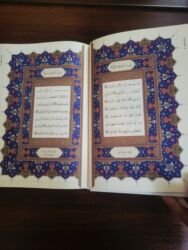 Antik Quran kitabı. Gümüşü qabda yerləşən miniatür ölçülü, antik Quran kitabı, ətrafında ornamental naxışları olan qədimi üslubda səhifələrə malikdir. Kompakt ölçüsü sayəsində daşınması rahatdır. K...