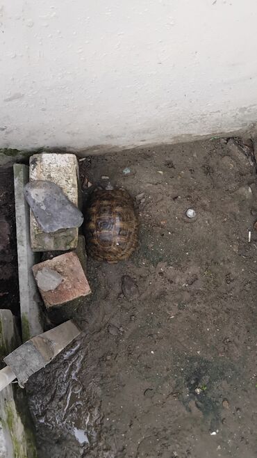Qeyd: Şəkillərdə tısbağa torpaq küncündə, daşların yanında görünür; qabıq naxışları və rəngi aydın seçilir.