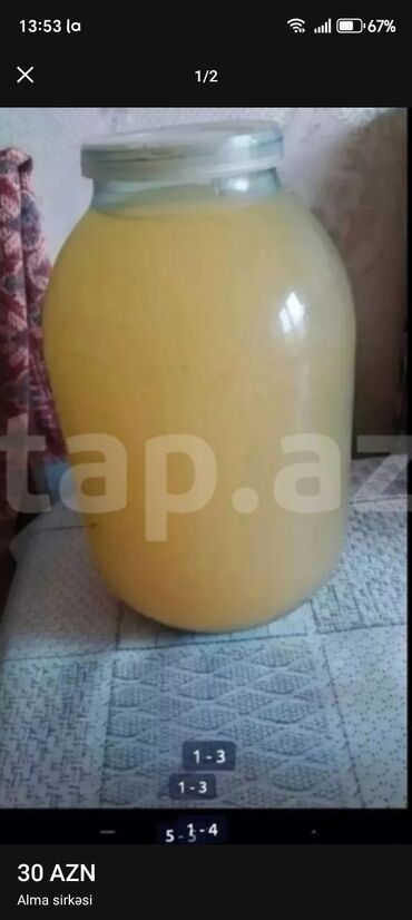 Pulsuz çatdırılmaDiqqət,diqqət 100 faiz təbii Qatqısız Falansız Alma sirkəsidir Bazar Maqazin sirkəsi deyil Qiymət 3 litrlik balon 30 AZN-ə.