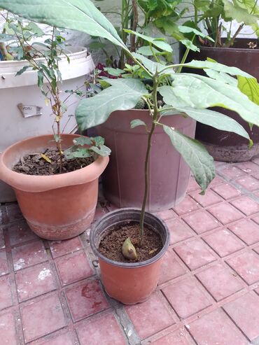 - Şəkillərdəki plastik saksıda avokado fidanı.