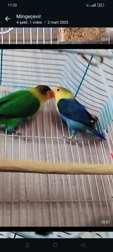 Hazır 1 illik nerazlucniklər 1 ədədi 40 azn. Bala nerazlucniklər 1 ədədi 30 azn Təsvir: - Şəkillərdəki sevgi tutuquşuları parlaq və nadir rənglərdədir: yaşıl-qırmızı alınlı, sarı-qırmızı başlı, m...