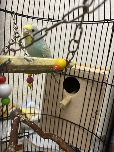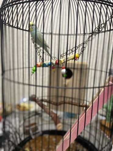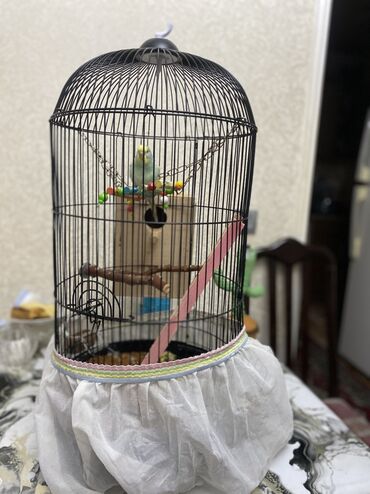 Komplekt satılır: qəfəs + yuvalıq + oturacaqlar + yelləncək + pilləkən + parça ətək + yem/su qabları.
