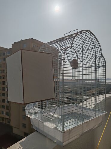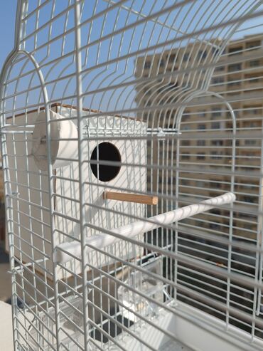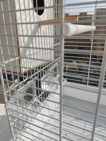 - Yuvalıq: qəfəsin kənarına bərkidilən taxta yuva qutusu, giriş dəliyi və daxilə daxil olan kiçik perch ilə.