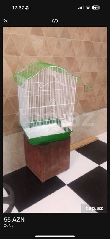 Quş üçünQuşlar üçün qəfəsdir yeniden ferqi yoxdu yeke qefesdir yeke papuqaylari da saxlamaq olar usdunde quslarin yuvasida verilir yem qabi su qabi her seyi verilir apilka ve otda verilir usdunde icinde nerdivan var guzgulu oda verilir qiymet sondur
