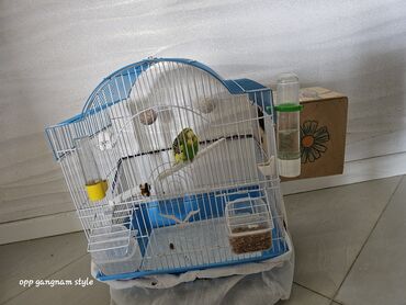 Quş qəfəsi və aksesuarları komplekti - Ölçü: orta həcmli, şaquli çubuqlu metal qəfəs - Rəng: ağ çərçivə, mavi altlıq - Üst hissədə örtük/pled yerləşdirmək üçün sahə - İki tərəfdə xaricdən taxılan ...