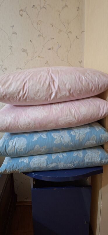 Rəngli yastıq dəsti - 4 ədəd dekorativ/yataq yastığı - Rənglər: mavi, açıq çəhrayı, iki ədəd bənövşəyi - Üzlüklərdə zərif güllü naxış - Kvadrat forma, orta hündürlük - Yumşaq, rahat doldurulma; ba...