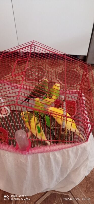 Tək şəkildəki tutuquşu 10azn, qəfəs yem su qabı və aksesuar qarışıq 30azn, cütə düşmüş erkək dişi qəfəs və bütün lazım olan aksesuar qarışıq 55azn, çatdırılma mümkündür, danışıqdan asılı olaraq. ko...