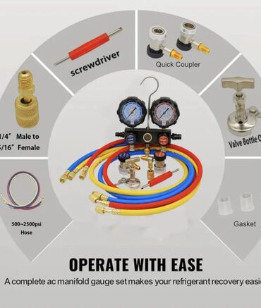 İstifadə sahələri: avtomobil A/C, split kondisionerlər, soyuducu və dondurucu sistemlərinin servis və texniki baxışı. Asan quraşdırma və işlətmə üçün tam dəst. Model: Set 1. Widely applicable/Operate with ease məlumatlı vizual göstəricilərlə.