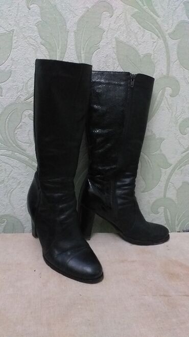 Qadın uzun temiz dəri çəkmə baha alınıb - Rəng: tünd qəhvəyi -