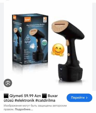 RAF par ütüsü. keyfiyyətlidir. Yenidir. məhdud sayda qaldığı üçün endirimdədir. ətraflı məlumat üçün zəng və ya whatsapp ✨ Şəhərin istənilən ərazisinə çatdırılma var.