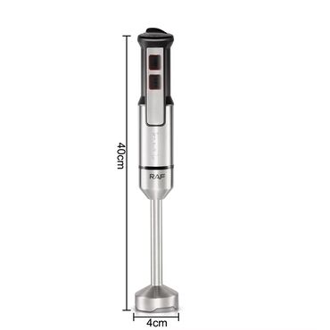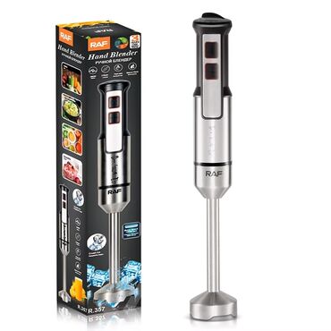 RAF əl blenderi, 1600W gücündə. Sürəti tənzimləmək üçün düyməsi var. Buzları əzmək üçün idealdır. İki düymə və sürətli başlama funksiyası ilə təchiz edilib. Dörd ədədli bıçaq sistemi ilə təmin edilib.