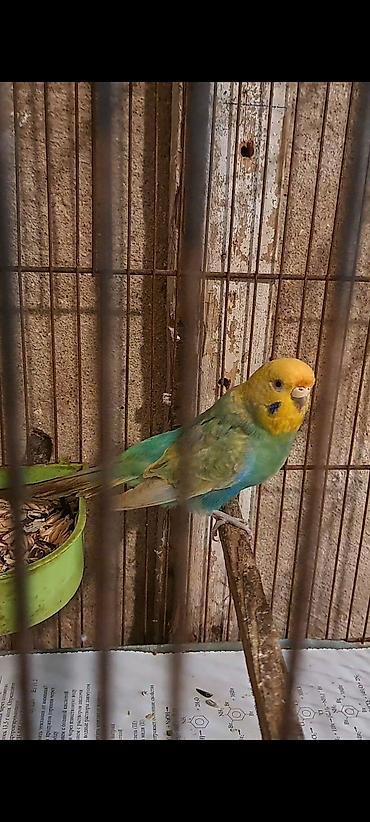 Qefes ve 3 papuqay satilir,1 i baladi 2 ayli.Usdunde yuvasi ve cimme