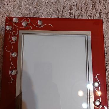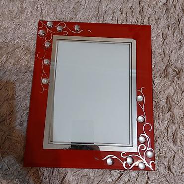 Şekil ramkasi tezedi qalin mohkem şuşesi var üirmizi reng. orta boyuk ölcude uzunu 30sm eni 23sm. 5azn.