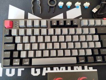 - Mexaniki açarlar: qırmızı açar qeyd edilib qutuda; klaviatura ilə bir neçə əlavə mavi açar da verilir. Açarçıxaran alətlər (switch puller və keycap puller) daxildir.