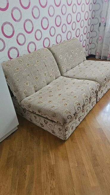 - 2 hissəli yumşaq divan: qatlanan mexanizmlə açılıb tam ölçülü yatağa çevrilir. Oturacaq və arxa hissələr eyni naxışlı parça ilə üzlənib.