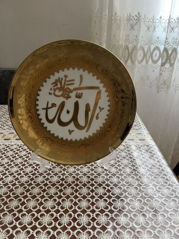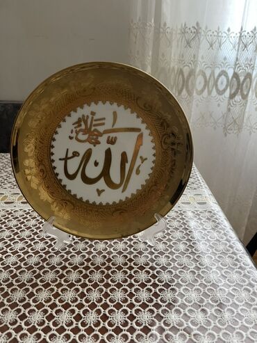 Qızılı dekorativ boşqab – “Allah” ərəb xətti ilə