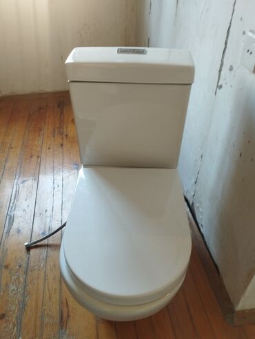 Ağ rəngdə unitaz və ayaqlı çanaq dəsti hamam otaqları üçün uyğundur