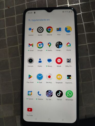Gündəlik istifadə üçün etibarlı modeldir: sosial şəbəkələr, zəruri tətbiqlər, zəng və mesajlaşma. Ekranda türkcə interfeys görünür, Google tətbiqləri və WhatsApp, TikTok kimi populyar proqramlar quraşdırılıb. Arxa qapaqda “realme” loqosu, kvadrat modulda kamera və LED flaş yerləşir.