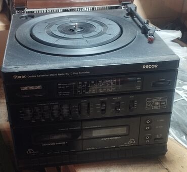 Vinyl, kaset və radionu bir qurğuda birləşdirən klassik stereo sistem. Retro səsi və çoxsaylı giriş/çıxış imkanları ilə evdə kolleksiyalardan zövq almaq üçün ideal. Markalanma: RECOR, Stereo Double Cassette / 4 Band Radio / Auto Stop Turntable.
