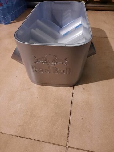 Qısa desək, içkilərin sərin saxlanması və vitrində cəlbedici təqdimatı üçün funksional Red Bull temalı buz qabı/soyuducu vannası.