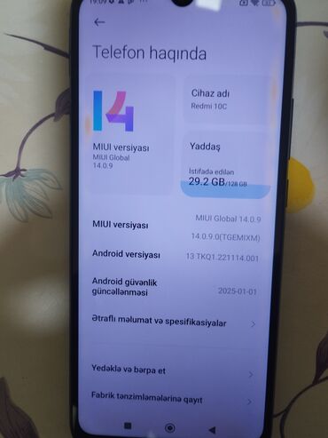 Redmi 15C smartfon Əsas xüsusiyyətlər (qutudakı məlumatlara əsasən): - NFC dəstəyi - Operativ yaddaş: 16 GB‑a qədər (8 GB + 8 GB genişləndirmə) - Daxili yaddaş: 256 GB - Batareya: 6000 mAh (tipik)...