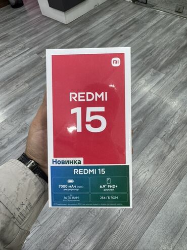 Xiaomi Redmi 15 smartfon - Marka/seriya: Redmi (Xiaomi) - Ekran: tam ekran, mərkəzdə deşikli ön kamera; incə çərçivələr - Arxa kamera bloku: üçlü kamera + LED fləş - Arxa panel: mat qara səth, Red...