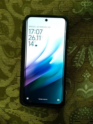 Xiaomi Redmi smartfon - Ekran: damla formalı çentikli, geniş ekran. Ön tərəf tam işlək görüntü ilə göstərilib. - Şəbəkə: Bakcell AZ – Nar şəbəkəsi ilə işləyir (şəkildə göstərilib). - Arxa panel: d...