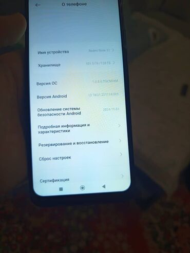- Model: Redmi Note 11 (şəkildə “Haqqında” bölməsi göstərilib)
