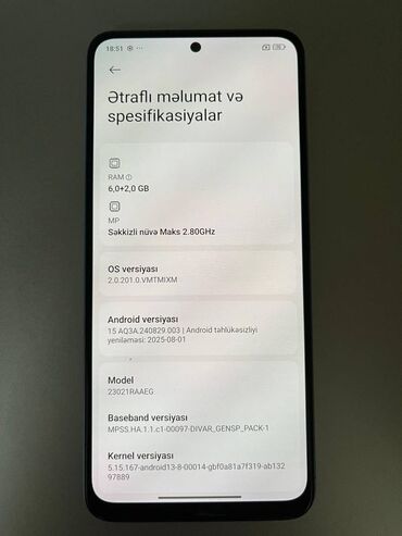 Redmi 9 - Rəng: Tünd göy/qrafit arxa örtük - Ekran: Tam ekran dizayn, sol yuxarı küncdə “hole‑punch” ön kamera - Arxa kamera sistemi: Mərkəzdə vertikal düzülüşlü çoxlu kamera modulu və LED fləş - ...