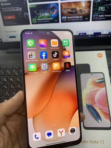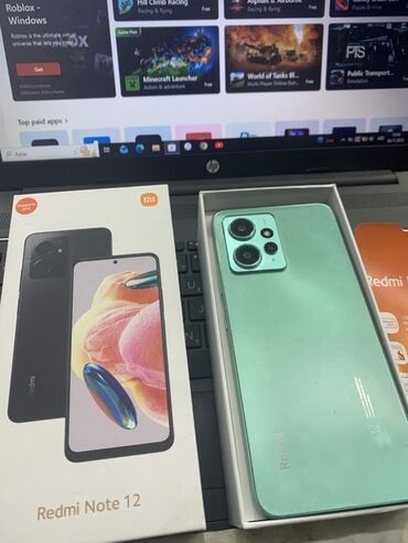 - Qutusu ilə birlikdə: orijinal Redmi Note 12 qutusu və sənədlər görünür