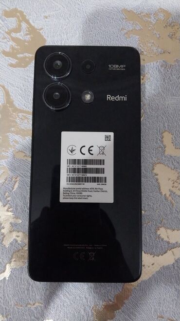 Xiaomi Redmi smartfon - Arxa tərəfdə üçlü kamera sistemi: əsas 108 MP kamera, əlavə sensorlar və LED işıq. - Arxa paneldə “Redmi” loqosu və EAC/CE etiketləri. - Ön tərəfdə tam ekran dizaynı, sol y...