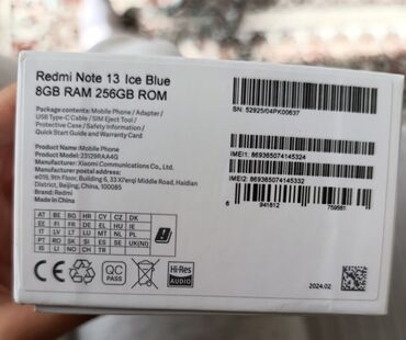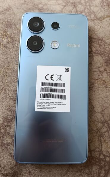 Xiaomi Redmi 13 – NFC dəstəyi ilə - Model: Redmi 13 (qutuda “Supports NFC” qeydli) - Rəng: Açıq mavi arxa panel, şüşə effektli tekstura - Ekran: Tam ekran dizayn, mərkəzi “punch‑hole” ön kamera - ...