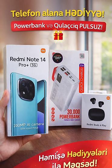 📱🚀 Redmi Note 14 Pro+ 5G ✨ premium 📦 bağlı qutu 📶 E-SIM dəstəyi ⚡ sürətli performans 🎁 Powerbank + 🎧 Qulaqlıq 📍 Lənkəran 🚚 pulsuz ⏳ Tələsin 📞 050-602-19-32